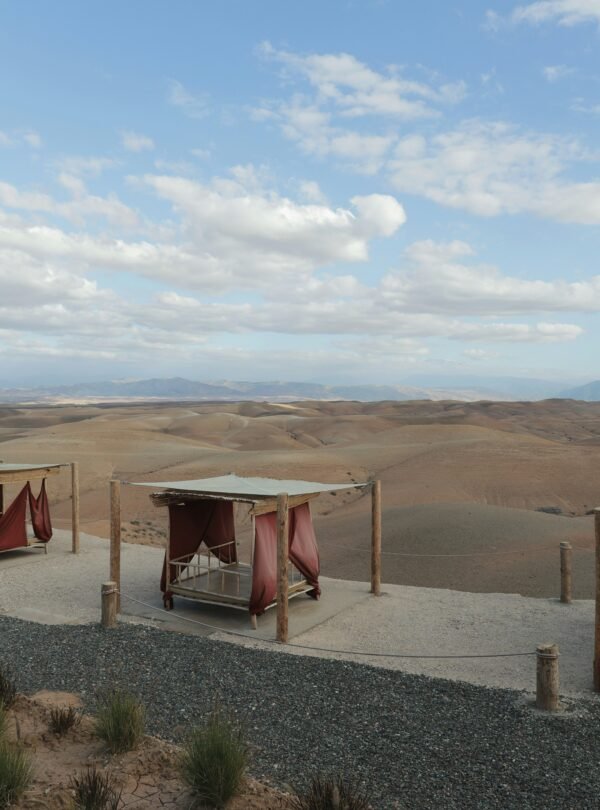 Your desert journey begins with a convenient pickup from your hotel or home in Marrakech, followed by a scenic drive to the Agafay Desert. As you leave the city behind, you’ll be treated to stunning views of the High Atlas Mountains and the unique rocky desert landscape that resembles a miniature Sahara.