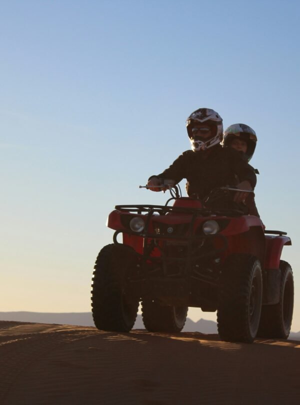 We recommend comfortable, lightweight clothing that you don’t mind getting dusty. Closed-toe shoes are essential for quad biking. Bring a hat, sunglasses, and sunscreen for sun protection. In cooler months, bring a light jacket for the evening. A scarf can be useful for protection from dust during the quad biking.